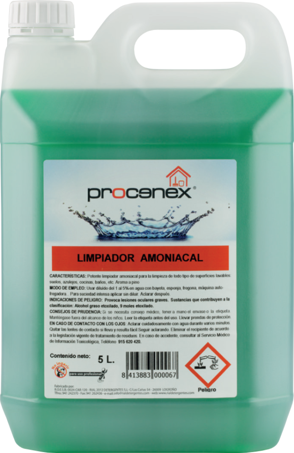 Potente limpiador amoniacal con agradable aroma a pino, para limpieza de todo tipo de superficies lavables; suelos, azulejos, cocinas…
